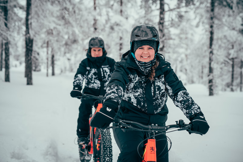 We make it easy for you to explore Levi on your own: Just book the bikes for you and your friends or family through the link above and we deliver them to your door! You'll have the day to ride around enjoying the outdoors before we pick them up again in the evening. There are over 20 km of maintained winter biking routes in Levi, so you'll have plenty of surroundings to explore!