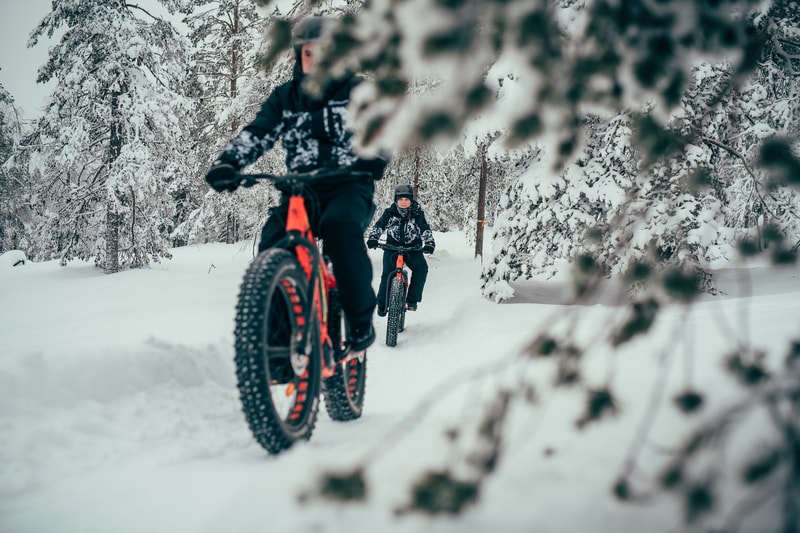 We make it easy for you to explore Levi on your own: Just book the bikes for you and your friends or family through the link above and we deliver them to your door! You'll have the day to ride around enjoying the outdoors before we pick them up again in the evening. There are over 20 km of maintained winter biking routes in Levi, so you'll have plenty of surroundings to explore!